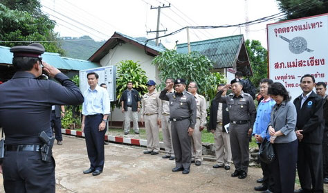 นายกรัฐมนตรีและคณะ เดินทางไปตรวจเยี่ยมด่านแม่เหาะ สภ.แม่สะเรียง เพื่อตรวจสอบการทำงานของระบบอ่านป้ายทะเบียนรถอัตโนมัติ (License Plate Recognition) วันที่ 25 เมษายน 2554 เวลาประมาณ 14.20 น. ....